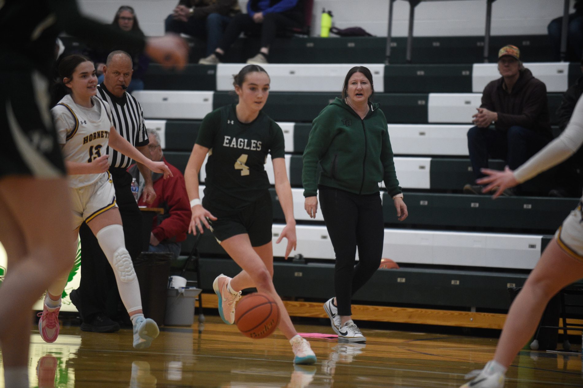 The Tongue River Lady Eagles hosted the Pine Bluff Lady Hornets. The Lady Eagles won 43-36. The score was tied at nine-all after the first quarter. Lady Eagles’ Chaney Reish opened the second quarter with a layup, but the Lady Hornets led 20-15 at the break.