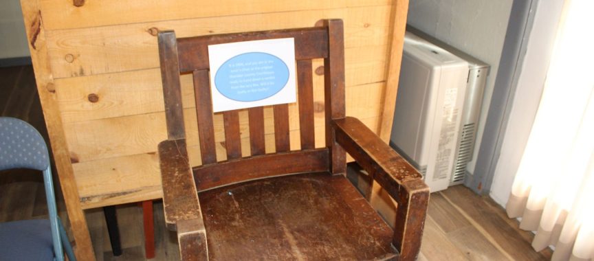 The juror’s chair from the Sheridan County Courthouse around 1906.