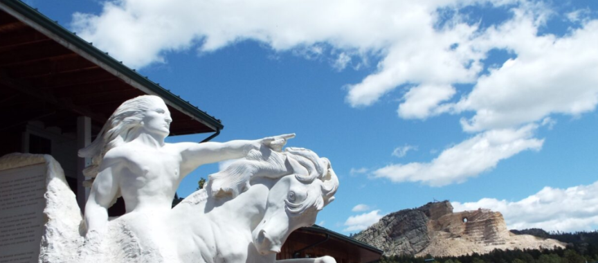 Feature photo: Sculpture of Crazy Horse at the Crazy Horse Memorial between Custer and Hill City, South Dakota to honor Crazy Horse. This is a model of what will be carved on Crazy Horse Mountain in the background.