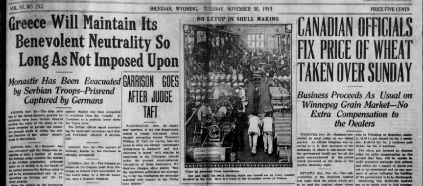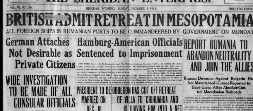 Ladies, if you’re looking for gifts for men, Reed’s has the largest and most beautiful assortment of men’s four-in-hand ties ever shown in Sheridan, as well as men’s silk half-hose, suspenders, gloves and shirts. Ties are sale priced starting at 50 cents, gloves $1.50, hose 35 cents. William Moncreiffe left this afternoon for New